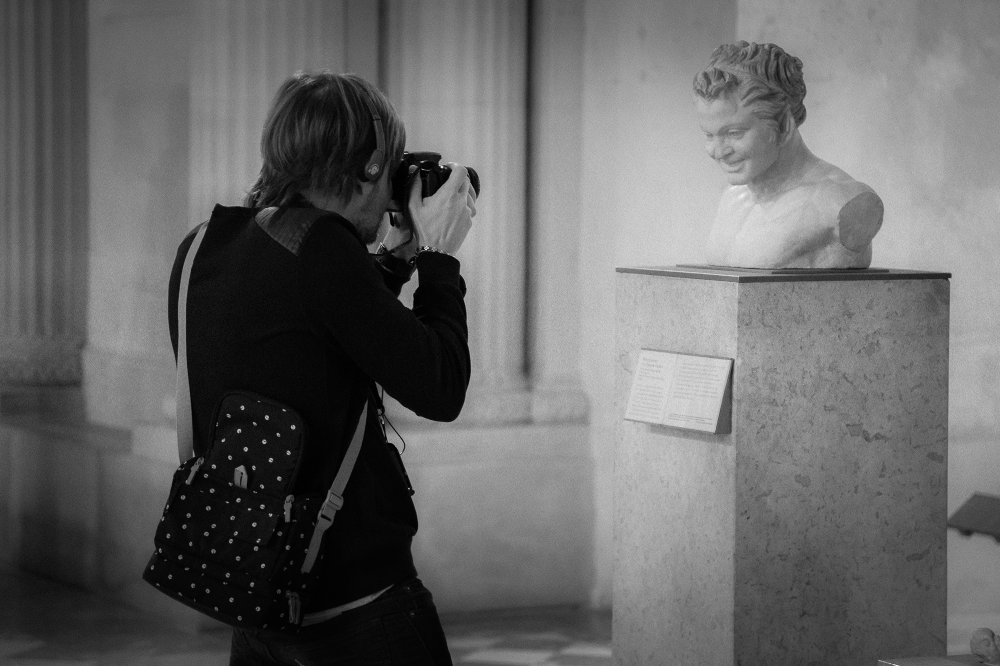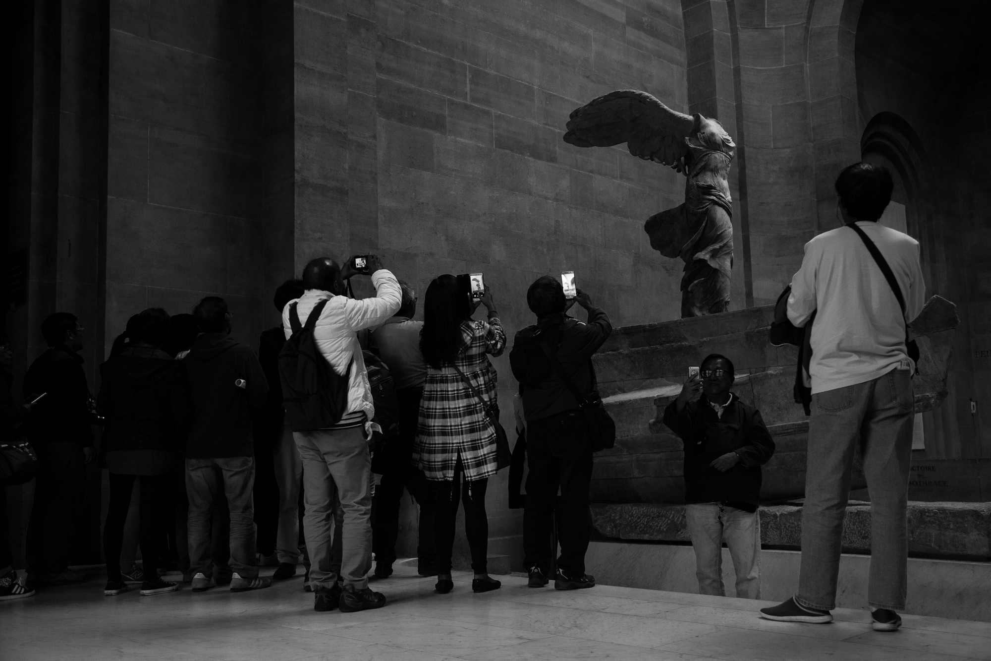 These works come from a time when only fire delivered light. But now my cellphone manages to make the Venus de Milo shine. The actual presence of a greek sculpture is less appealing than the bright image a tablet delivers. All eyes involuntarily glance at the largest one around.